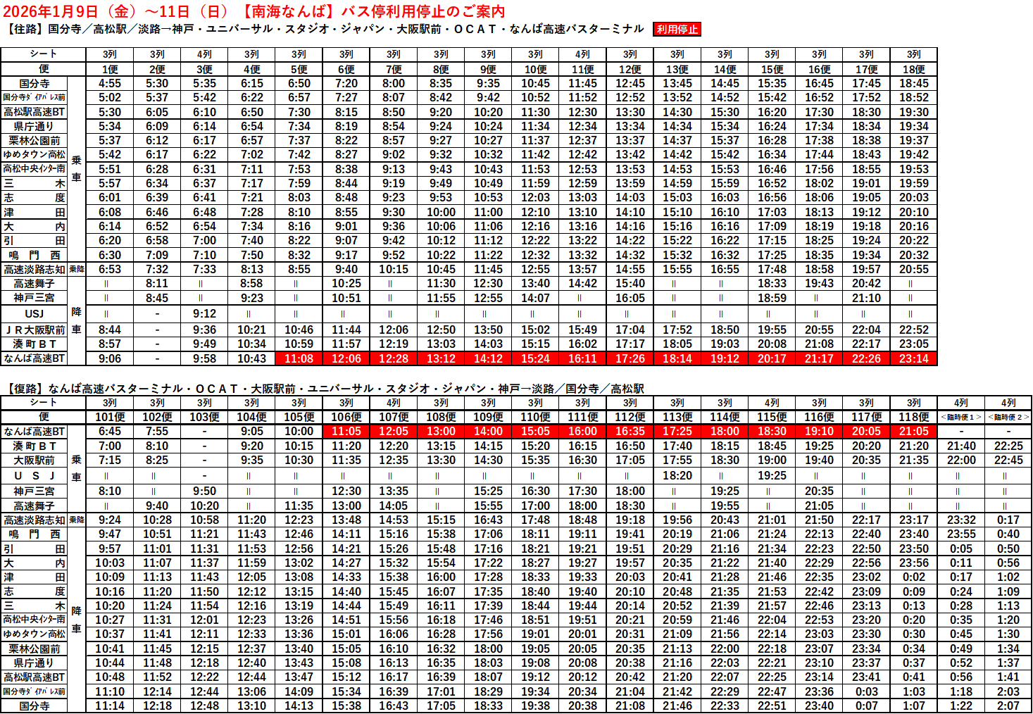 該当便をご利用のお客様は、「OCAT(JRなんば)」 からのご乗車・降車をお願い致します。