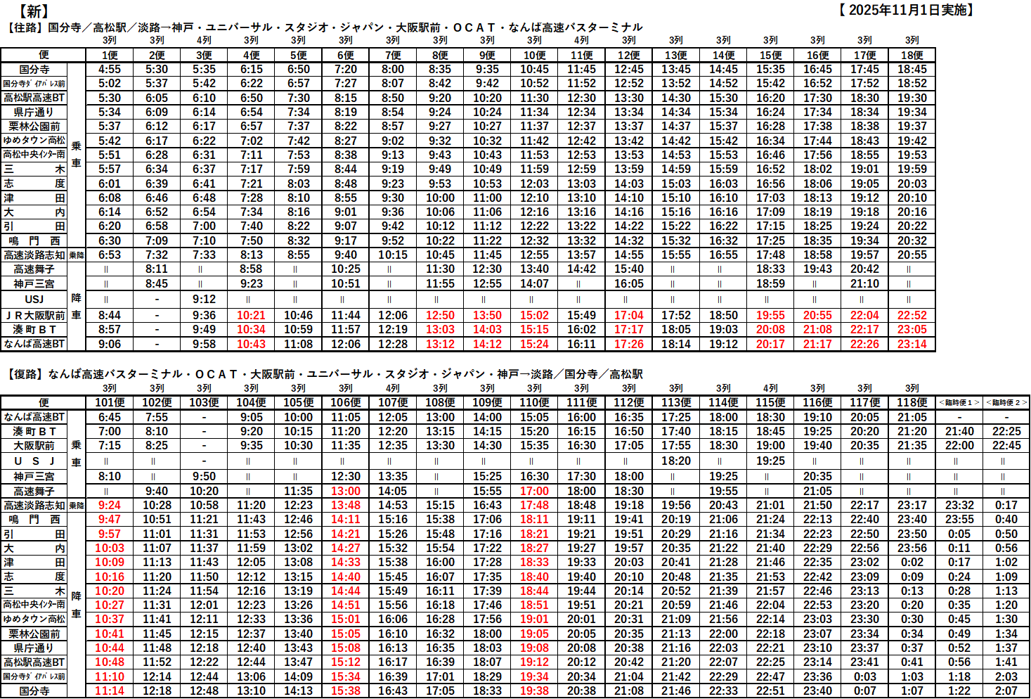 11月1日以降乗車分の予約ですが、以下の通りダイヤ改正がございます。